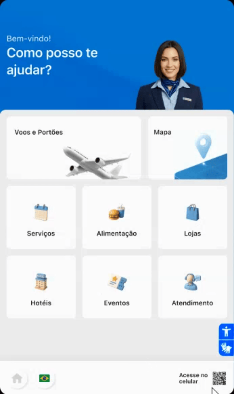 Solução de autoatendimento que simplifica a jornada do passageiro e aumenta a eficiência operacional do aeroporto.